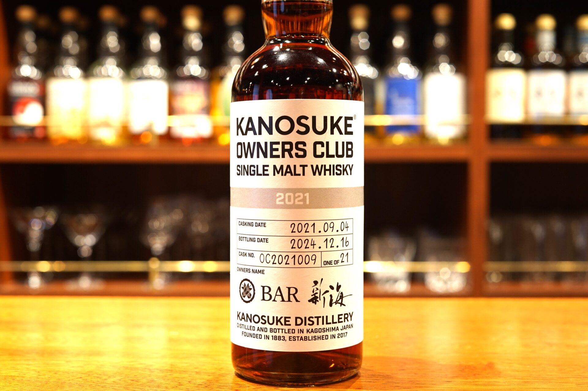 【嘉之助オーナーズクラブ シングルモルト for BAR 新海】は、28Lのフレンチオーク樽にてノンピート原酒を3年間熟成、ボトリング数21本限定の貴重なウイスキーです。