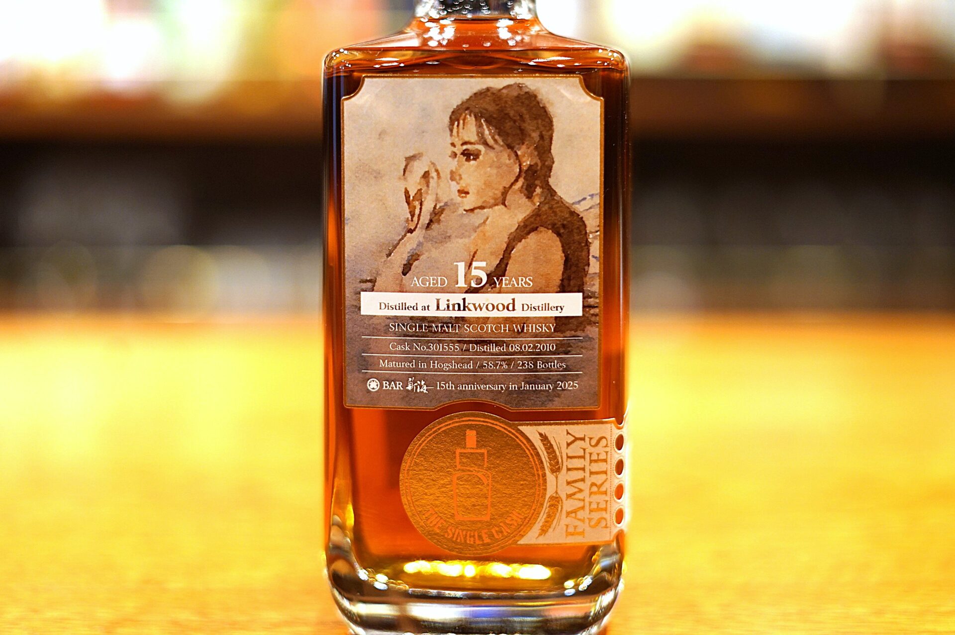 BAR新海 15周年記念ボトルの「第二弾」は、英国のインディペンデントボトラー「The Single Cask Ltd」の日本法人である「シングルキャスクジャパン」にご協力頂き、15周年に相応しい、『Linkwood 15年』をボトリングさせて頂きました。