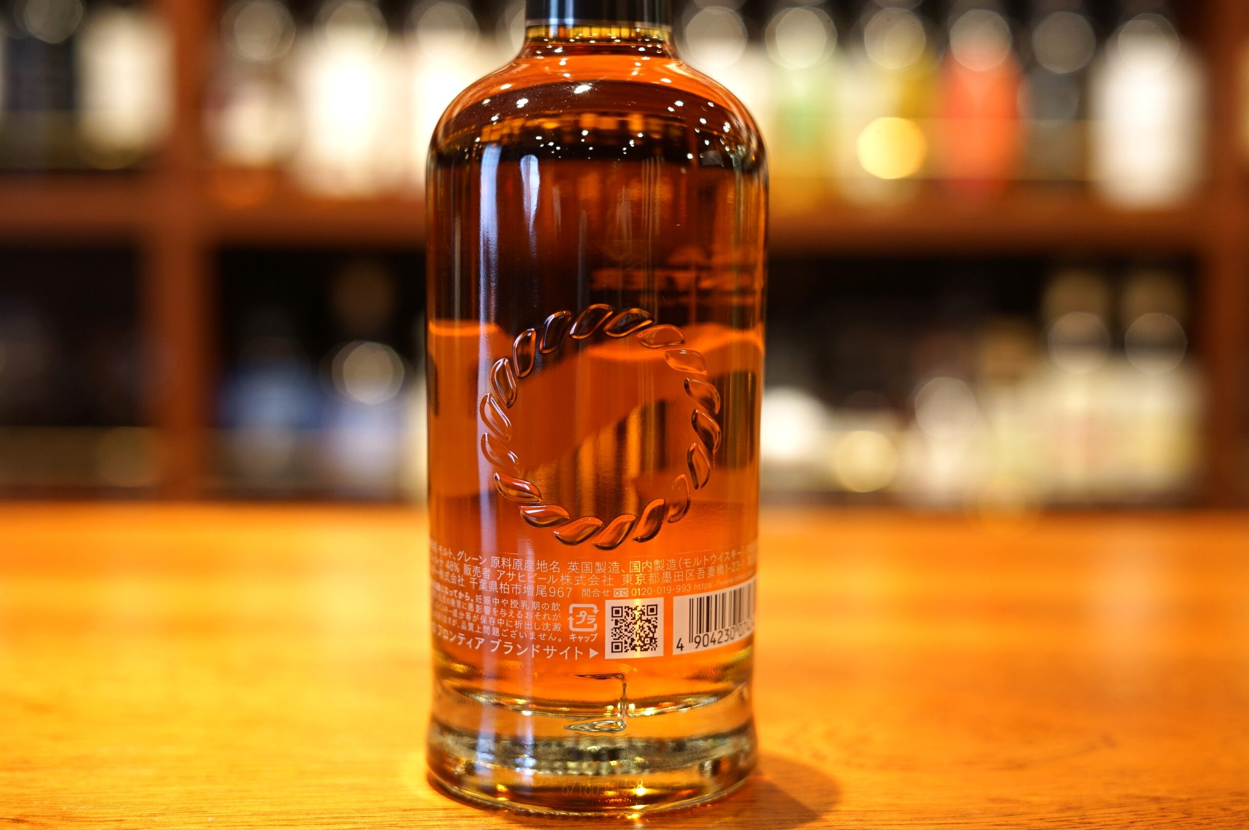 The bottle has a simple design that shows the full liquid color. The front of the bottle features a large “N” in the same font as the corporate logo “NIKKA WHISKY” in the center, and the “Nikka emblem” is applied to the cap seal. On the back side, a design of a sacred straw rope is engraved. This design is derived from the fact that Masataka Taketsuru’s family of birth was a sake brewer, and the distillery’s pot still is covered with a shimenawa, expressing the founder’s passion for whisky making.